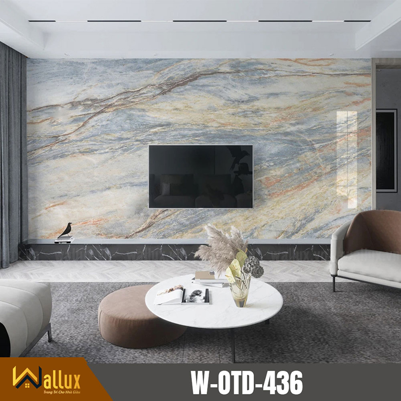 Tấm PVC Vân Đá Tráng Gương Wallux có thể sử dụng cho trang trí bức vách tivi, đằng sau ghế sofa, quầy lễ tân, và hầu hết các không gian nhà như: phòng khách, phòng ngủ, nhà bếp,